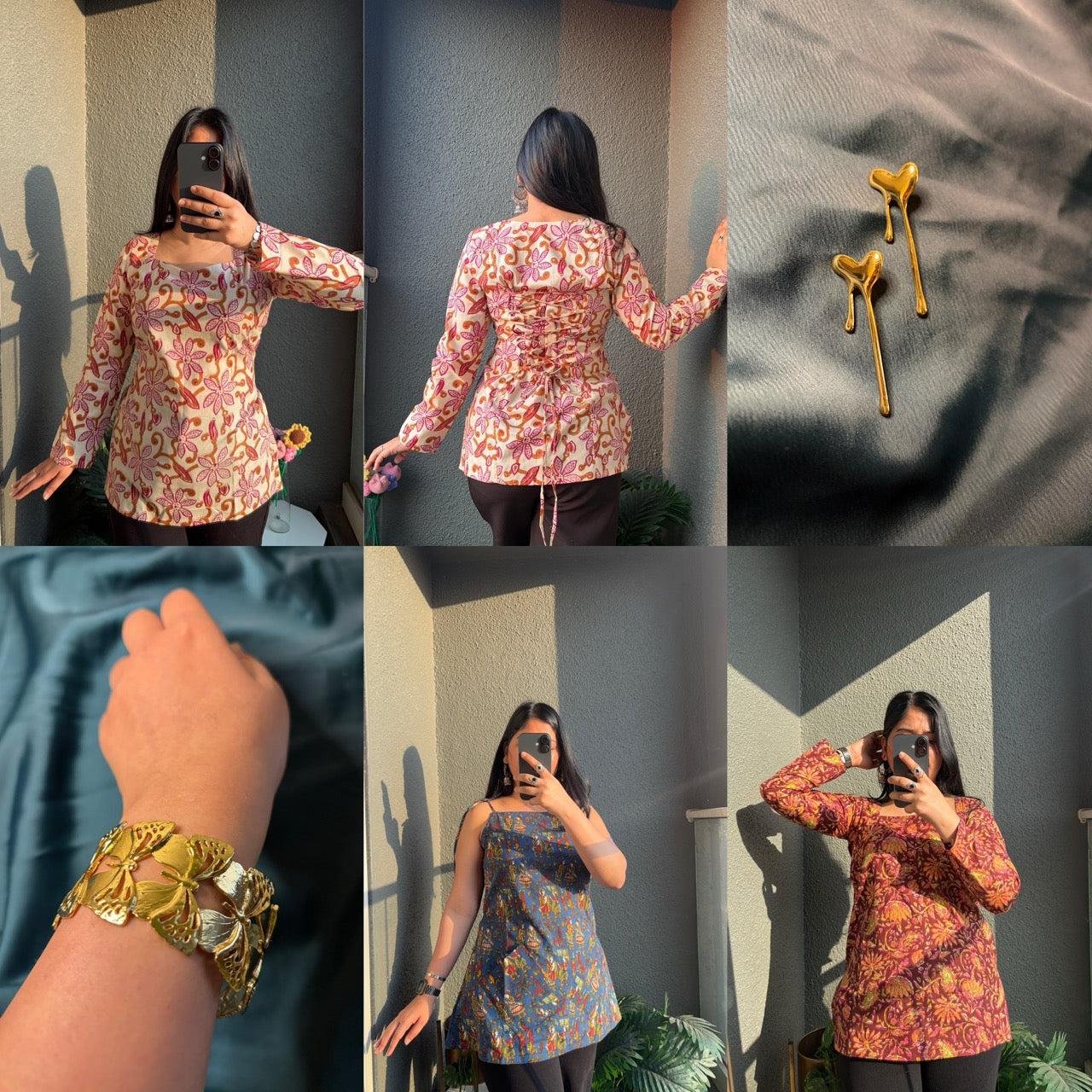 Ananya Full Sleeve Blue Pink Corset Short Kurti